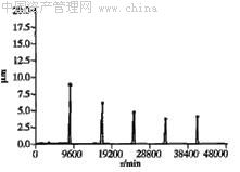 撫順石化公司石油二廠一臺轉(zhuǎn)速為8100r/min的氣壓機組白于壓縮機軸彎曲振動逐漸升高,壓縮機的工頻振幅明顯增加(圖1)。經(jīng)過動平衡校驗后,同頻振動幅值又恢復到正常水平(圖2)。