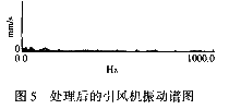 該引風機更換了自由端軸承和齒式聯(lián)軸器后,振動值正常(表1),頻譜見圖5。運行狀況一直很好。